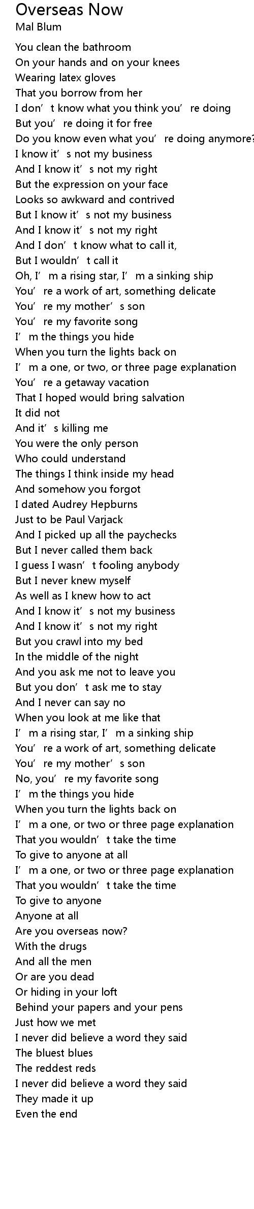| Song | Overseas Now |