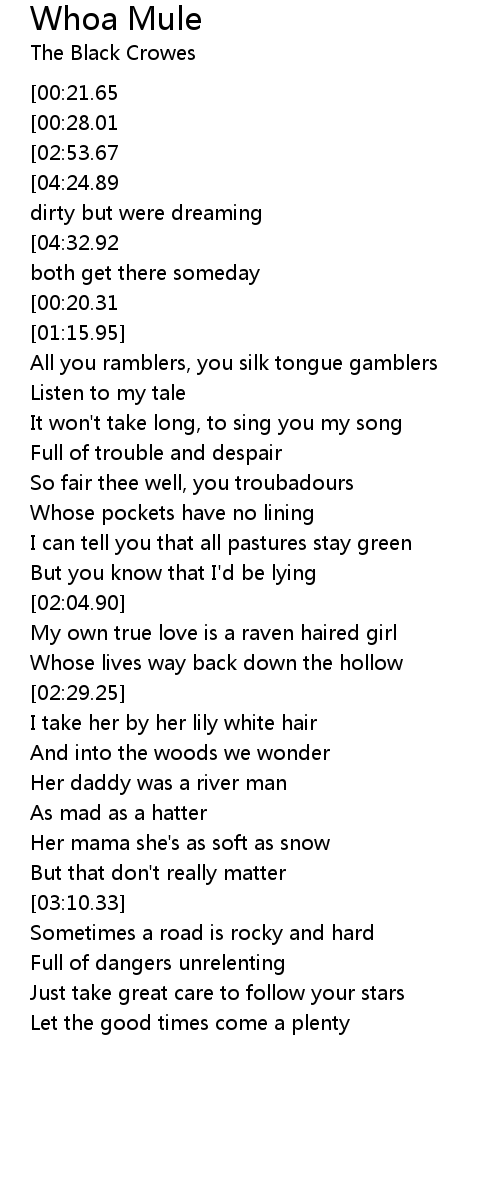 | [05:03.56][00:21.65] | The Black Crowes Whoa Mule |