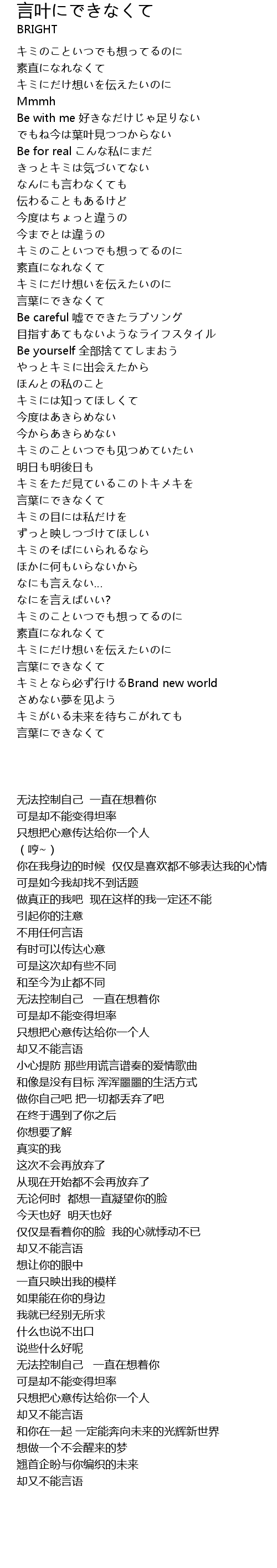 | [00:50.31] | Be with me 好きなだけじゃ足りない |
