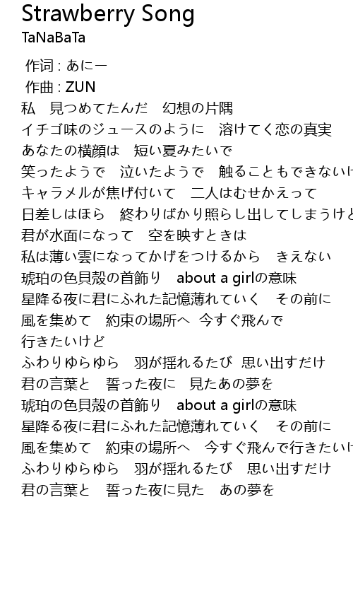| [00:31:000] | イチゴ味のジュースのように 溶けてく恋の真実 |