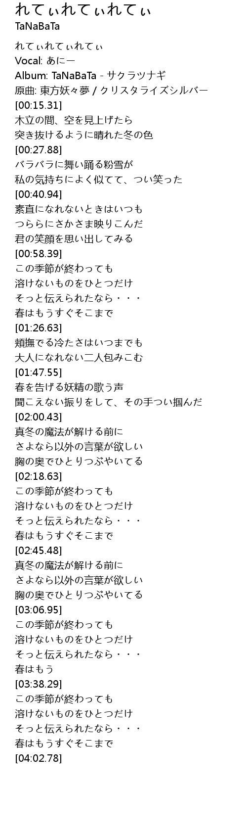 | [00:04.98] | Album: TaNaBaTa - サクラツナギ |