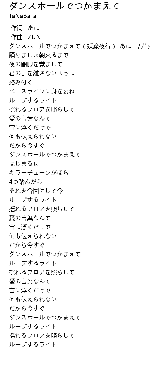 | [01:16.662] | ダンスホールでつかまえて |