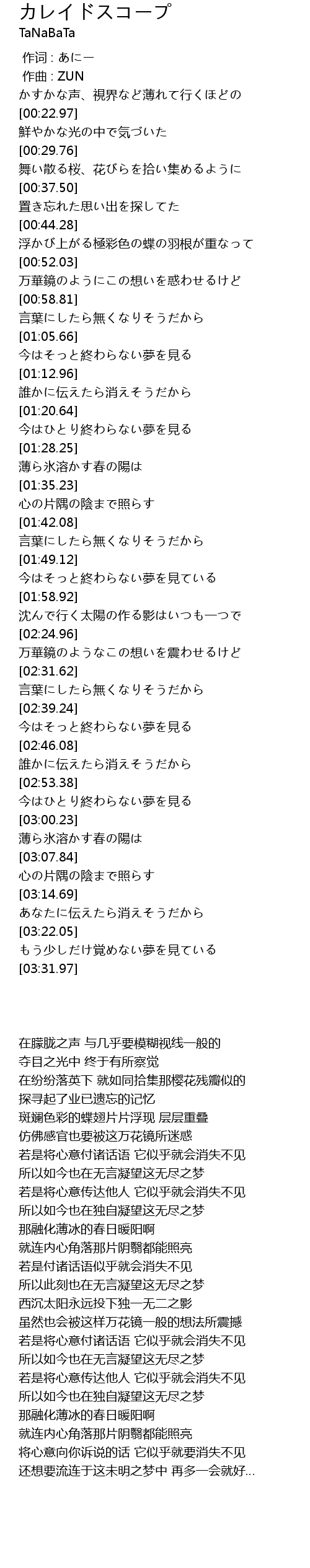 | [00:52.41] | 万華鏡のようにこの想いを惑わせるけど |