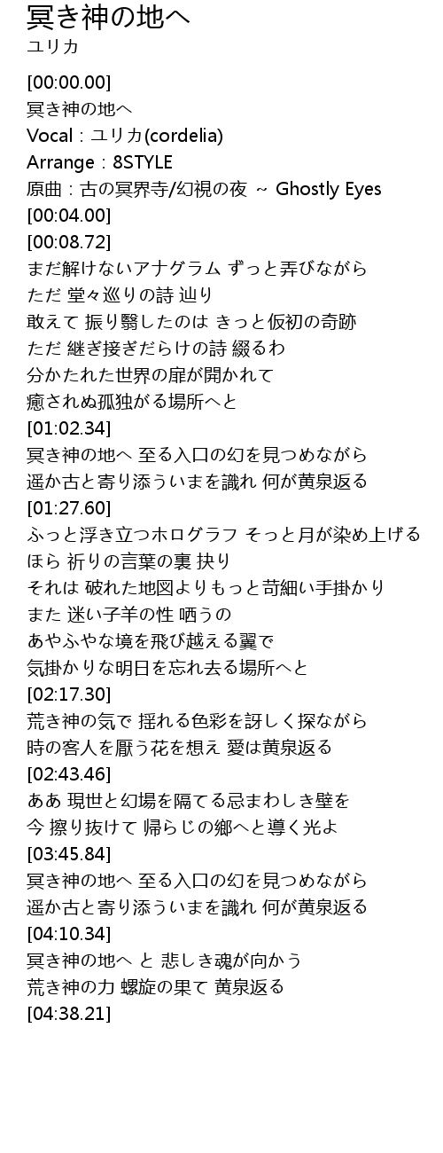 | [00:04.00] | 原曲:古の冥界寺/幻視の夜 ~ Ghostly Eyes |