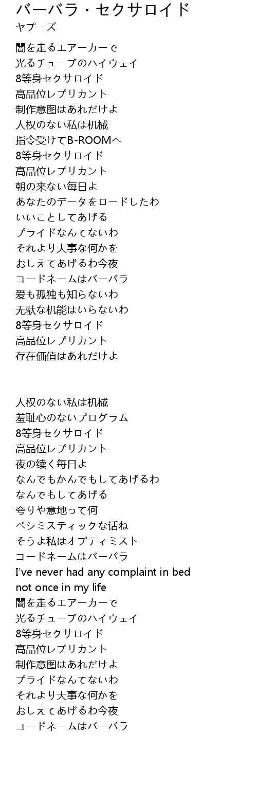 | Song | バーバラ・セクサロイド |