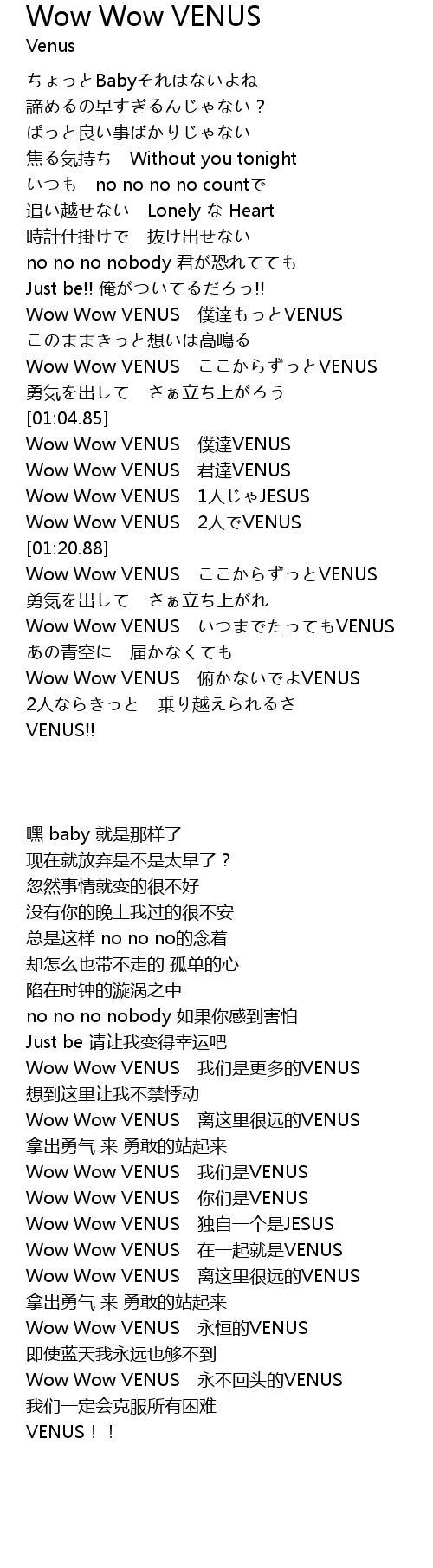 | [01:16.52] | Wow Wow VENUS 2 ren VENUS |