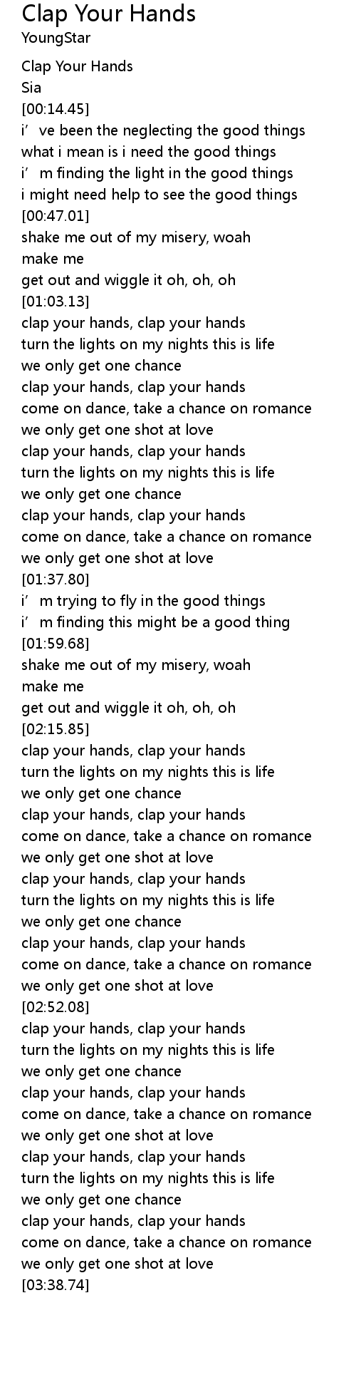 | [00:01.12] | Clap Your Hands |