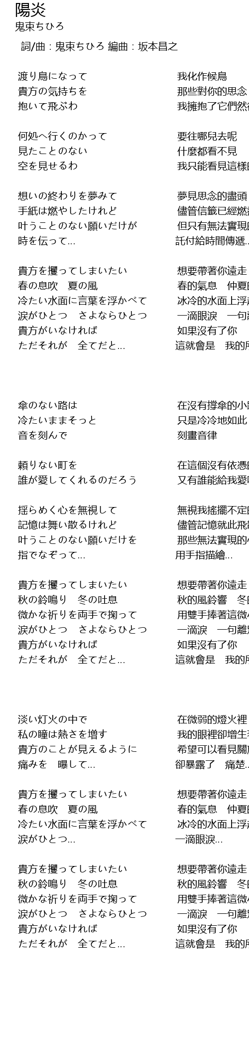 | Song | 陽炎 |