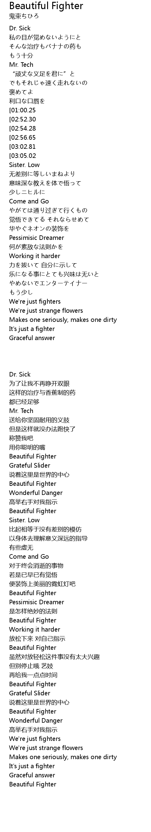 | [02:08.87][02:52.30][03:00.93][03:26.45] | Beautiful Fighter |
