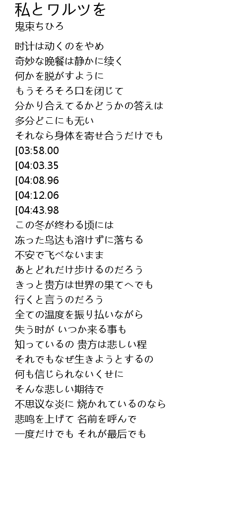 | [01:45.23][04:43.98] | どうか私とワルツを |