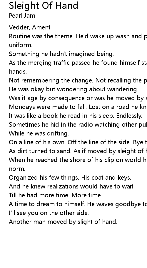 Was it age by consequence or was he moved by sleight of hand? |