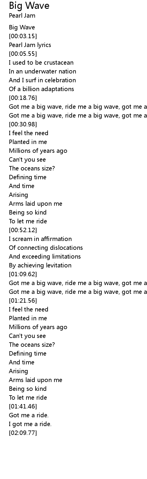 Got me a big wave, ride me a big wave, got me a big wave. |