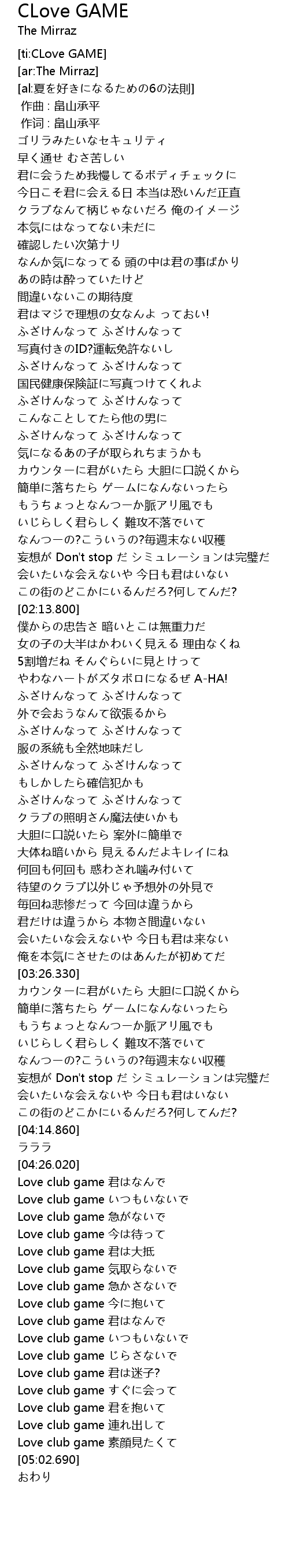 | [01:46.310] | 気になるあの子が取られちまうかも |