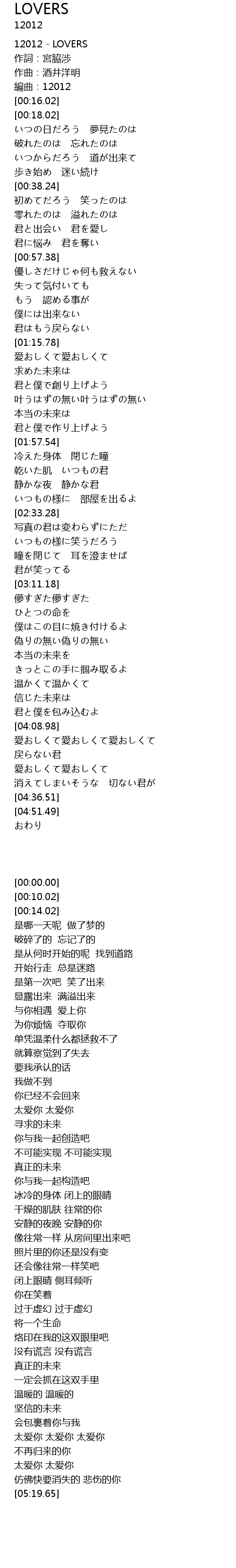| [00:00.00] | 12012 LOVERS |