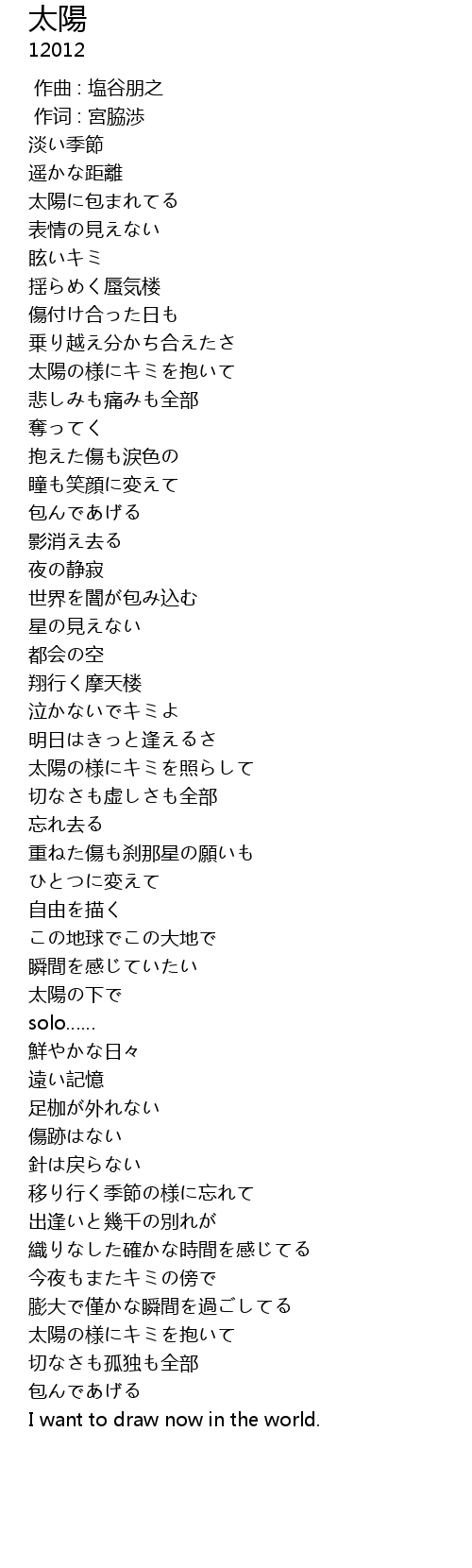 | [03:34.38] | 太陽の様にキミを抱いて |