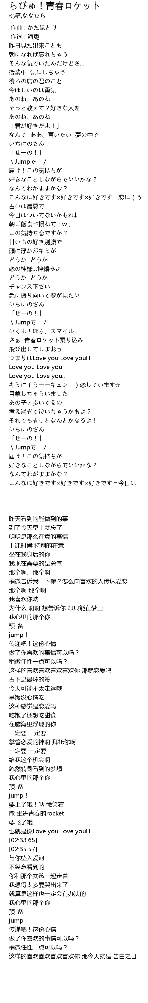 | [03:32.50] | こんなに好きです×好きです×好きです=今日は——(うーーGo!!)告白日和! |