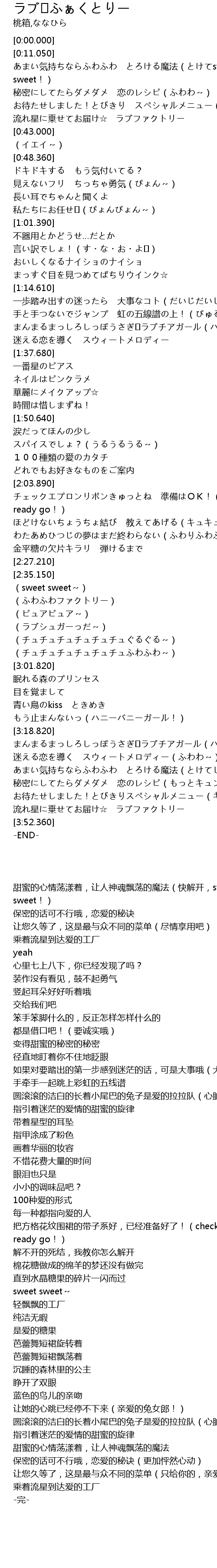 | [3:45.590] | 流れ星に乗せてお届け☆ ラブファクトリー |