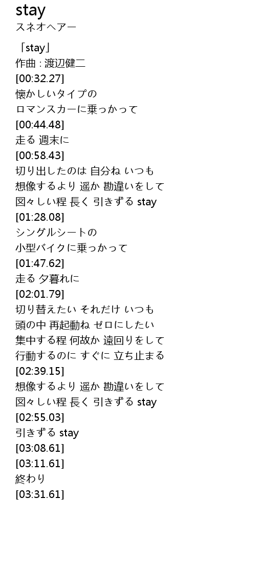 | [02:46.57] | 図々しい程 長く 引きずる stay |