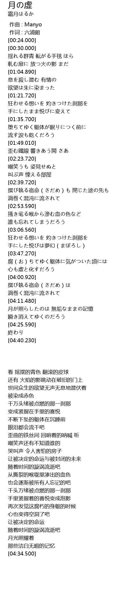 | [02:33.520] | 叫ぶ声 慄える部屋 |