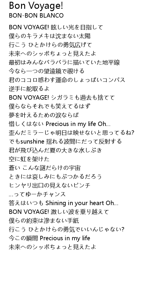 | [00:00.00] | BON VOYAGE! xuàn guāng mù zhǐ |