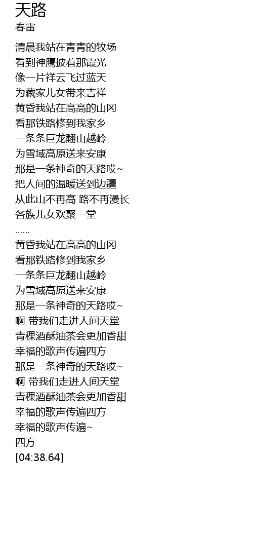 [03:51.47] nà shi yī tiáo shén qí de tiān lù āi