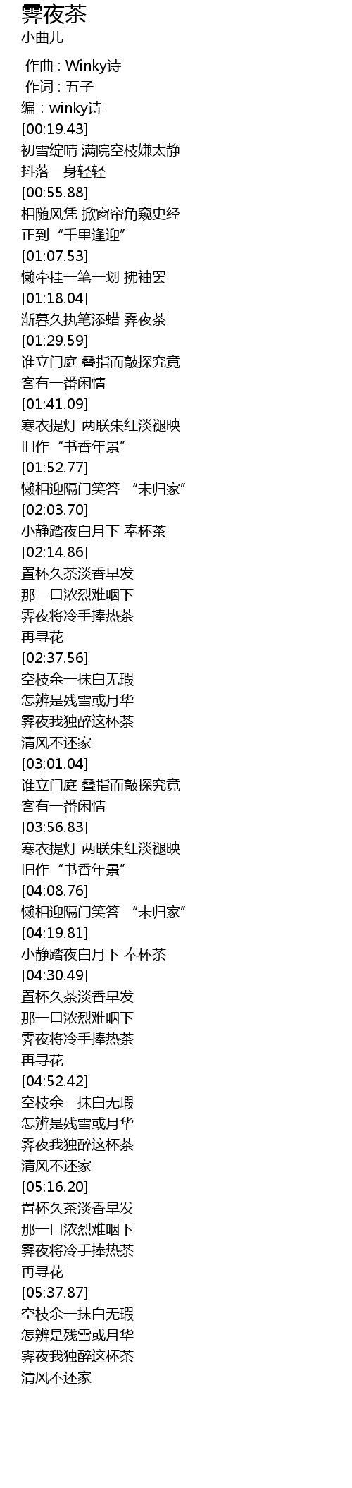 | [05:06.00] | 霁夜我独醉这杯茶 |