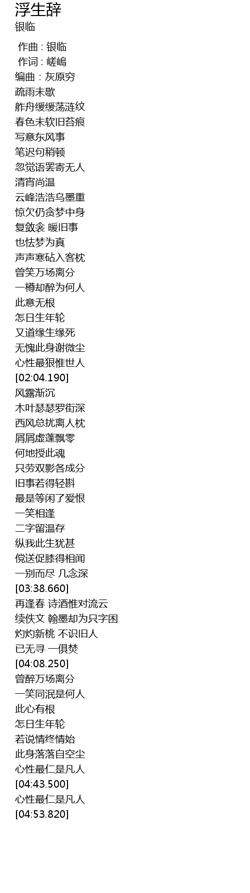 | [04:31.500] | 此身落落自空尘 |