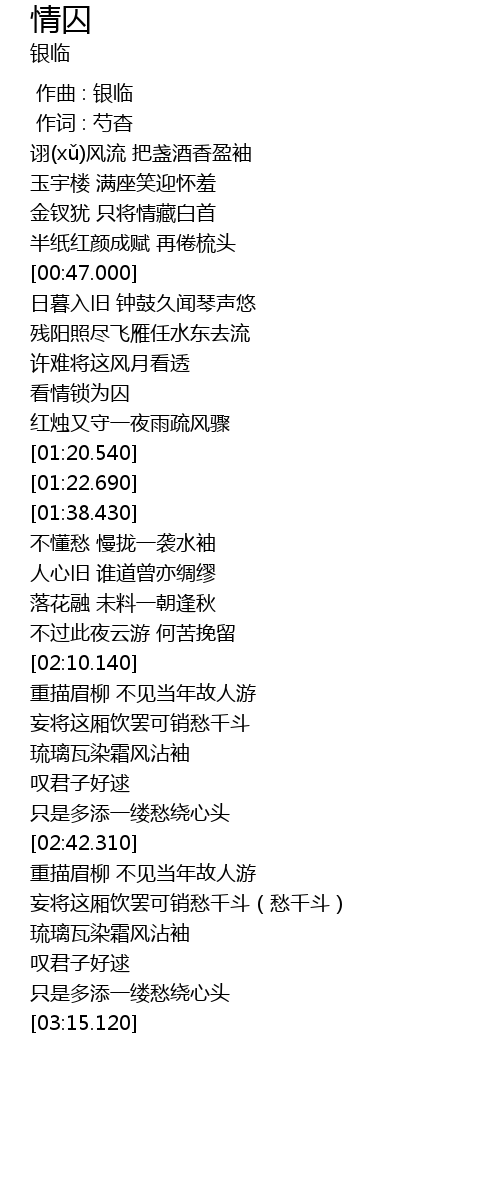 | [02:35.270] | 只是多添一缕愁绕心头 |