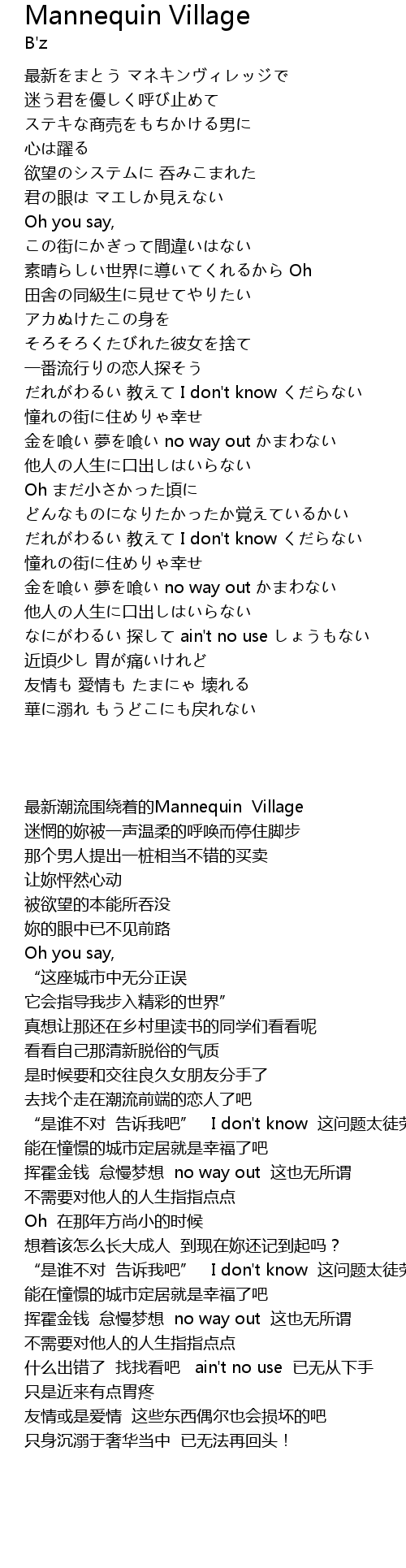 | [00:28.69] | 最新をまとう マネキンヴィレッジで |