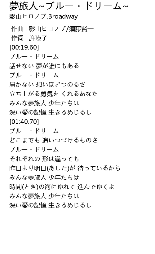 | [01:00.91] | みんな夢旅人 少年たちは |