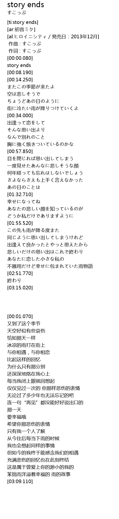 | [02:23.300] | 悲しいだけの思い出はこれで終わり |