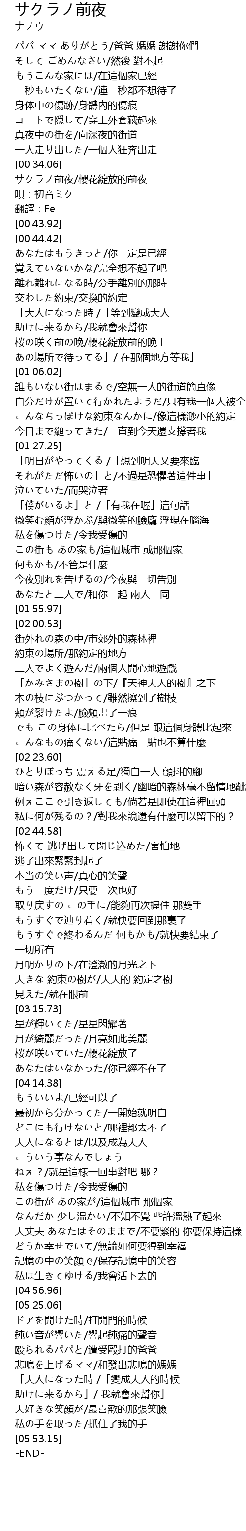 | [00:34.86] | サクラノ前夜/櫻花綻放的前夜 |