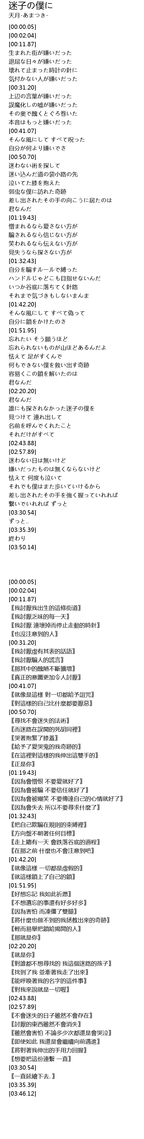 | [02:22.68] | 誰にも探されなかった迷子の僕を |