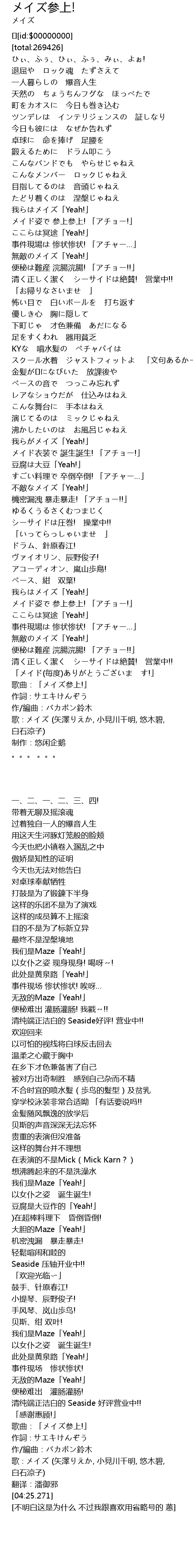 | [04:17.361] | 歌曲:「メイズ参上!」 |