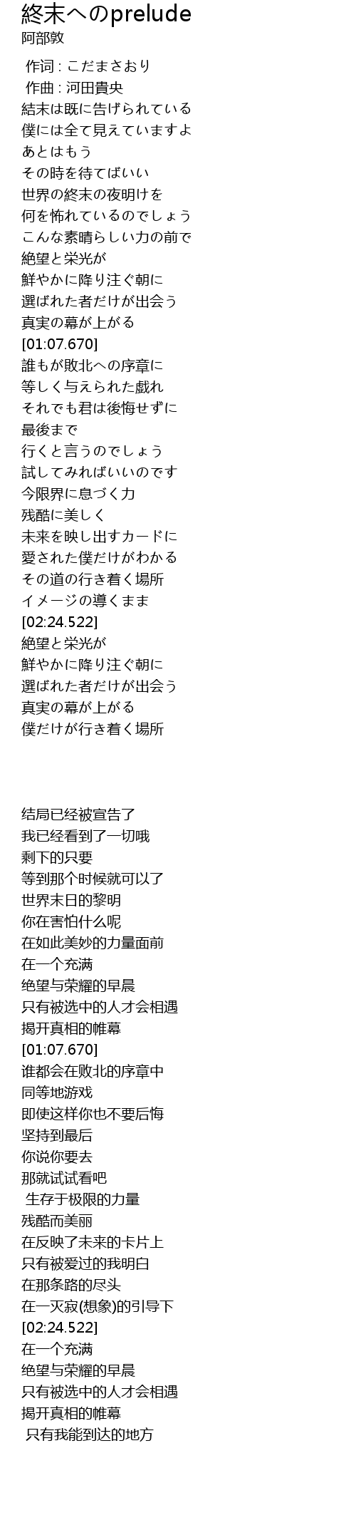 | [00:11.932] | 結末は既に告げられている |