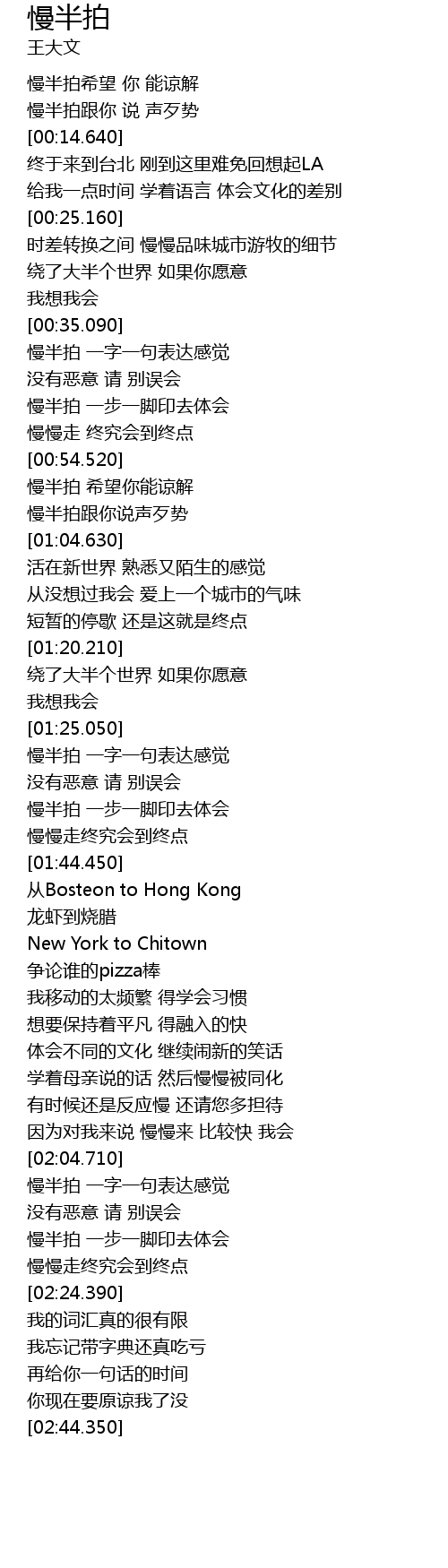| [01:00.360] | 慢半拍跟你说声歹势 |