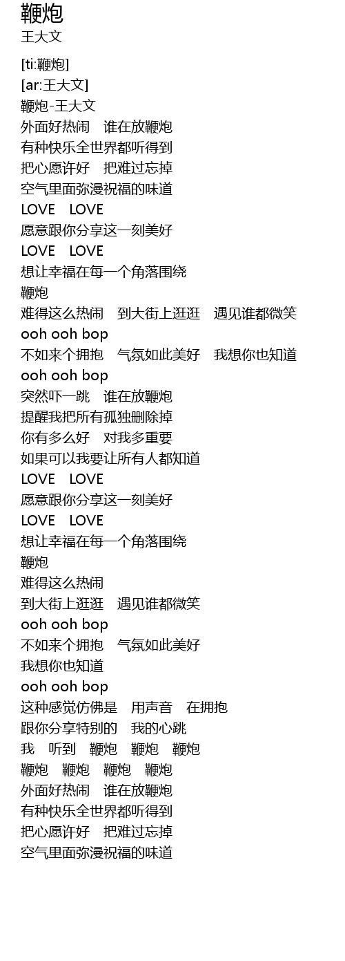 | [00:01.563] | 鞭炮-王大文 |
