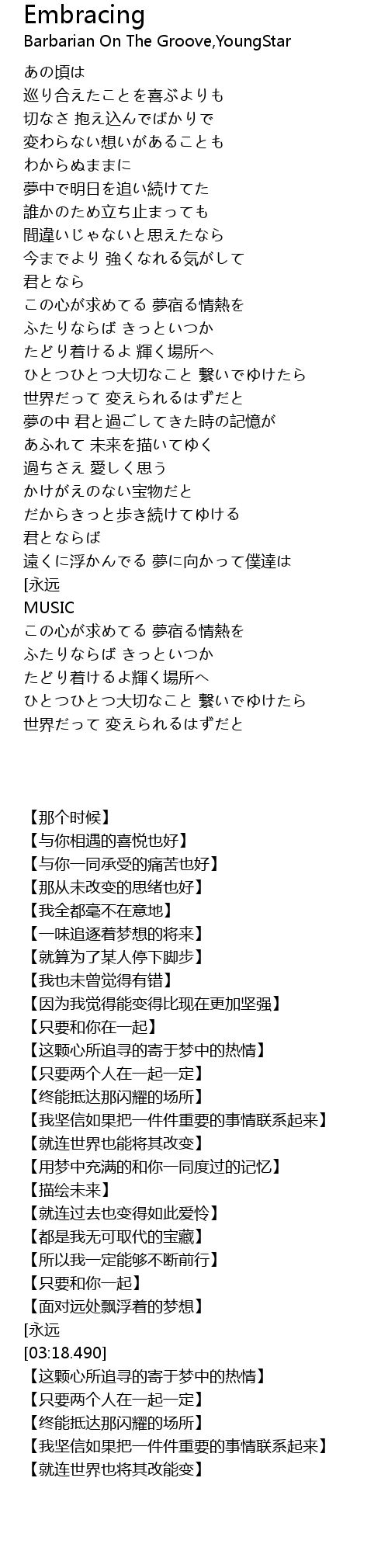 | [03:07.490][永远] | 永遠を抱きしめ手を伸ばす いつだって |