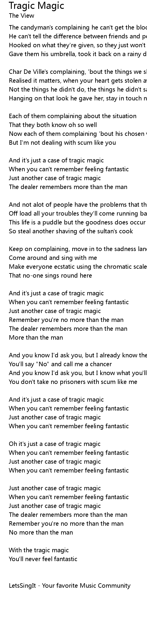 Oh it's just a case of tragic magic |