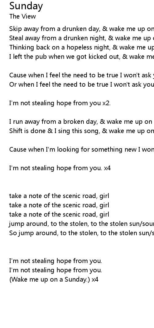 Thinking back on a hopeless night, & wake me up on Sunday. |
