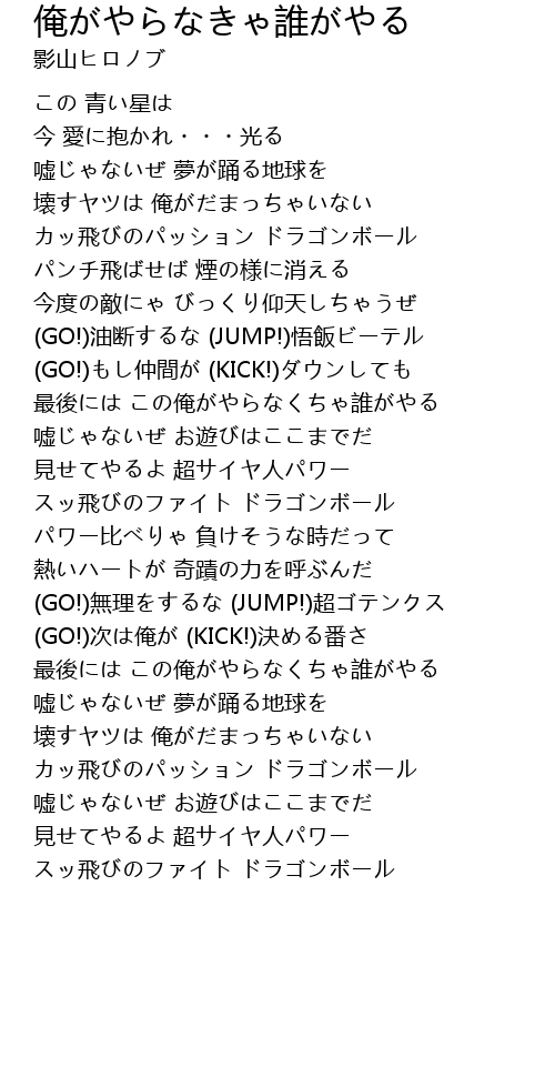 | Song | 俺がやらなきゃ誰がやる |