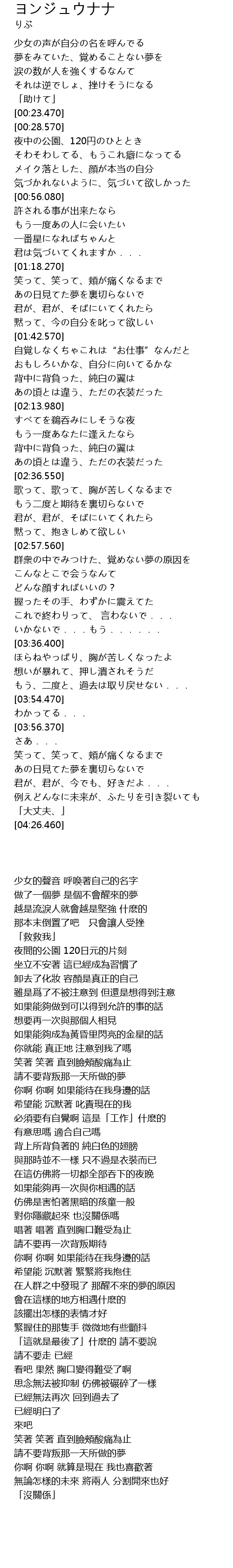 | [03:57.620] | 笑って、笑って、頬が痛くなるまで |