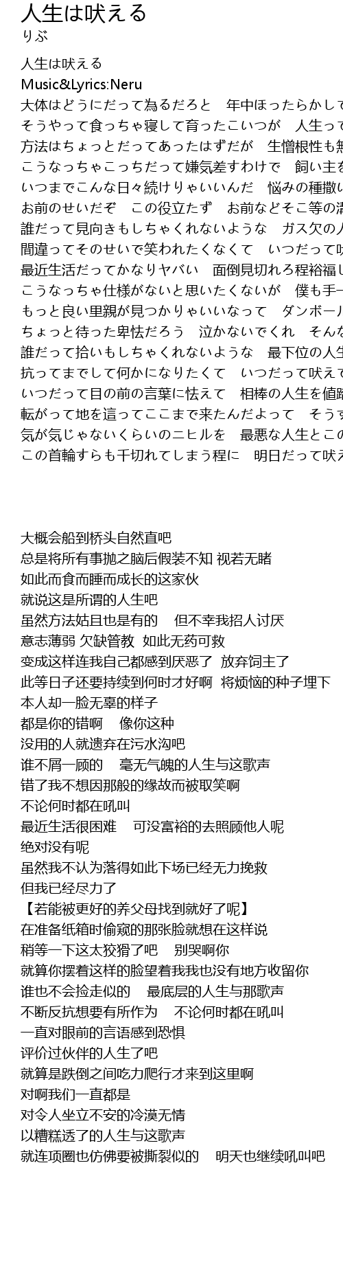 | [00:52.673] | いつまでこんな日々続けりゃいいんだ 悩みの種撒いた当人知らぬ颜 |