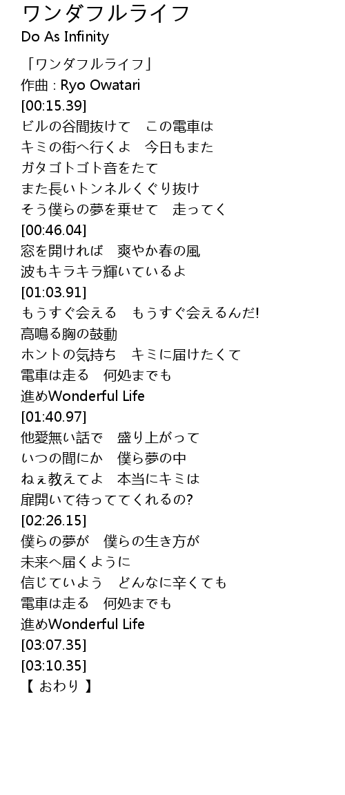 | [02:02.41] | いつの間にか 僕ら夢の中 |