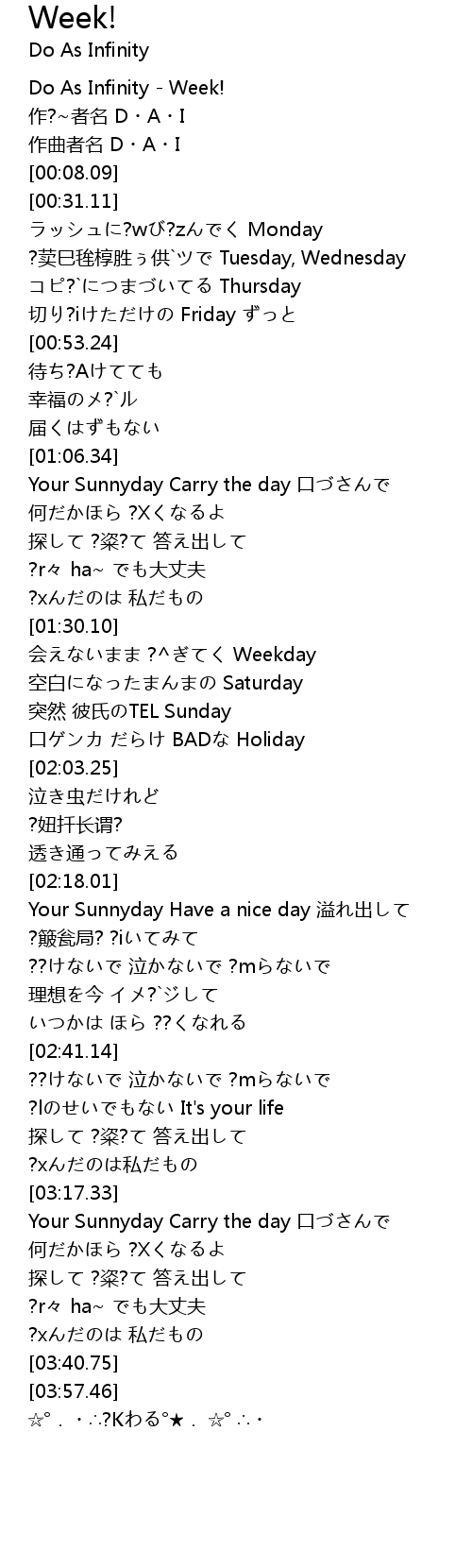 | [00:48.38] | 切り?iけただけの Friday ずっと |
