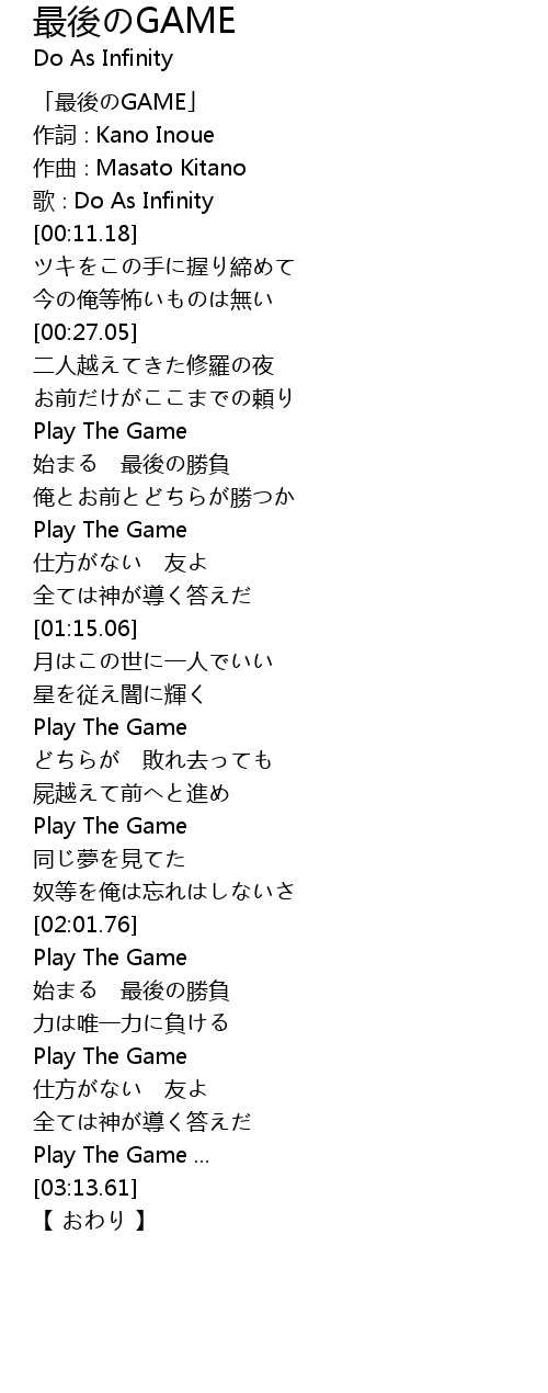 | [00:03.18] | 「最後のGAME」 |