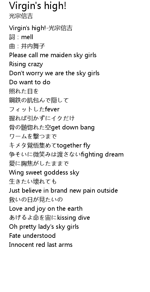 | [00:00.200] | Virgin's high!-光宗信吉 |