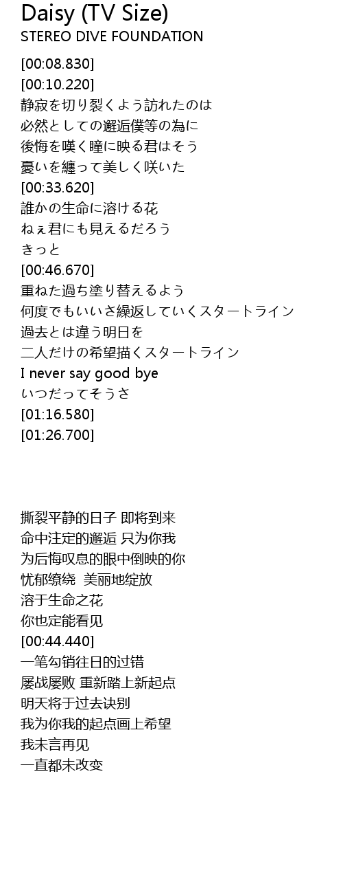 | [00:34.270] | 誰かの生命に溶ける花 |