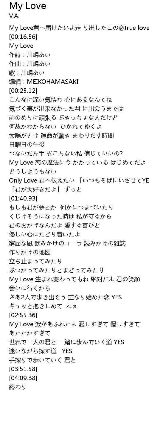 | [02:23.48] | My Love 生まれ変わってもね 絶対だよ 君の笑顔 |