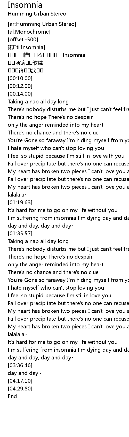 | [03:24.47] | I'm suffering from insomnia I'm dying day and day. |
